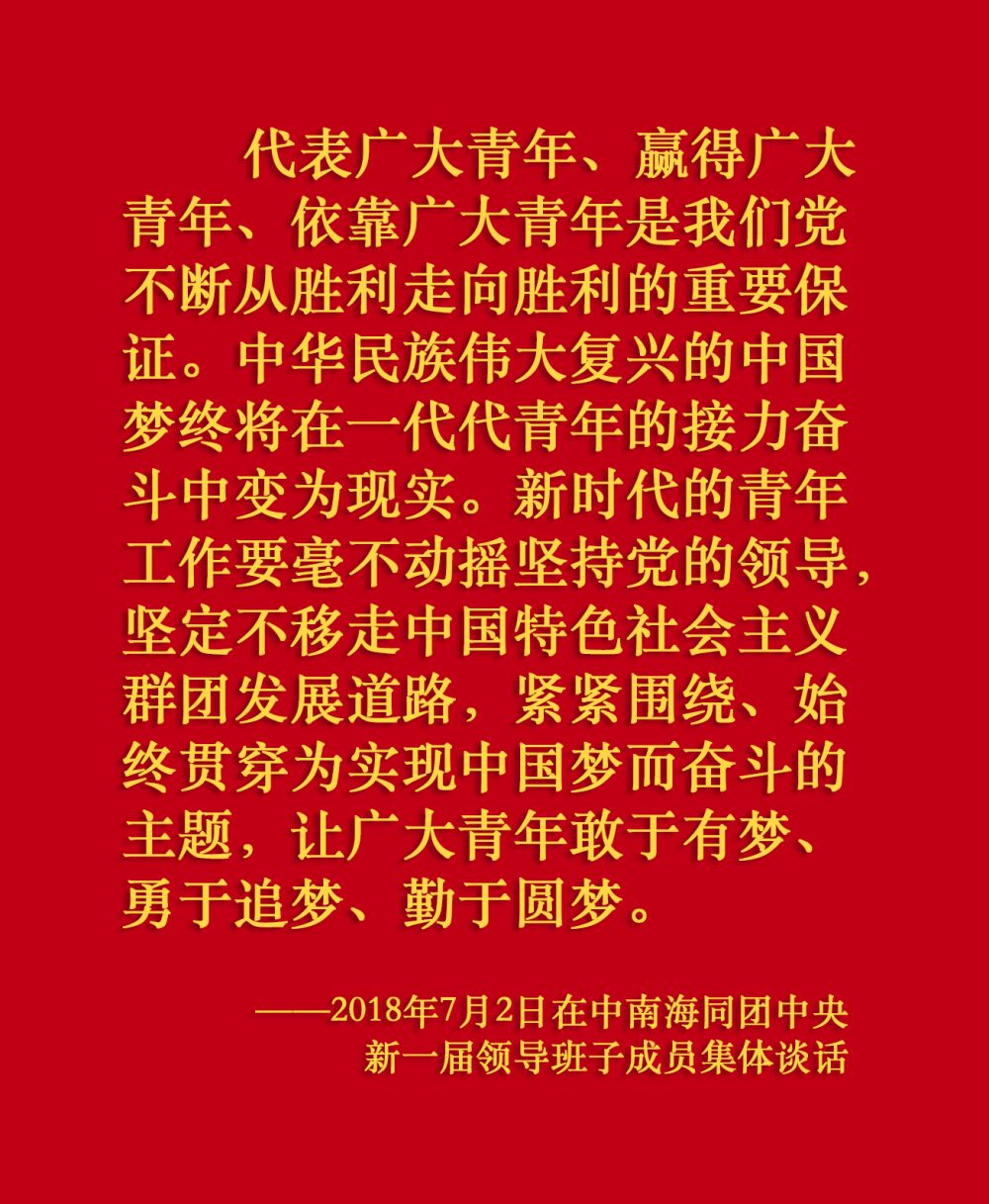在慶祝中國共產(chǎn)主義青年團成立100周年大會上,習(xí)近平總書記從黨和國家事業(yè)發(fā)展全局出發(fā),給共青團明確提出了4點希望,飽含深情、催人奮進。
