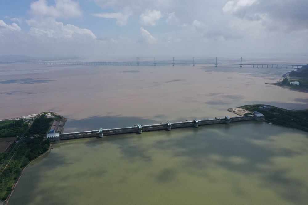 2023年8月4日拍攝的曹娥江大閘(無人機(jī)照片)。新華社記者 黃宗治 攝