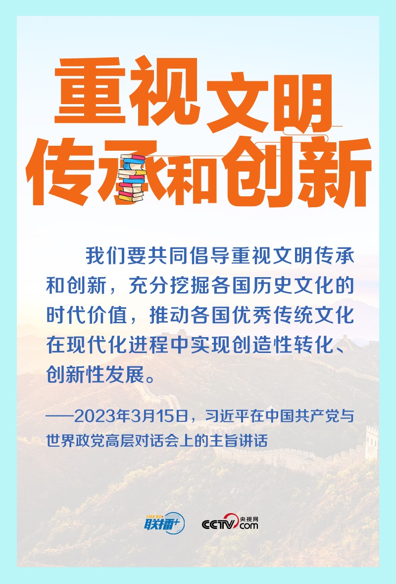 重視文明傳承和創(chuàng)新,是文明交流互鑒的動力源泉。2023年年初,習(xí)近平總書記在中國共產(chǎn)黨與世界政黨高層對話會上首次提出全球文明倡議,這是繼全球發(fā)展倡議、全球安全倡議后,新時代中國為國際社會提供的新的國際公共產(chǎn)品。