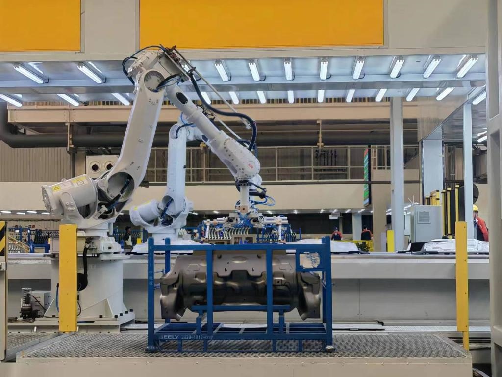 吉利汽車西安工廠沖壓車間機器人正在自動抓件。新華社記者姜辰蓉 攝