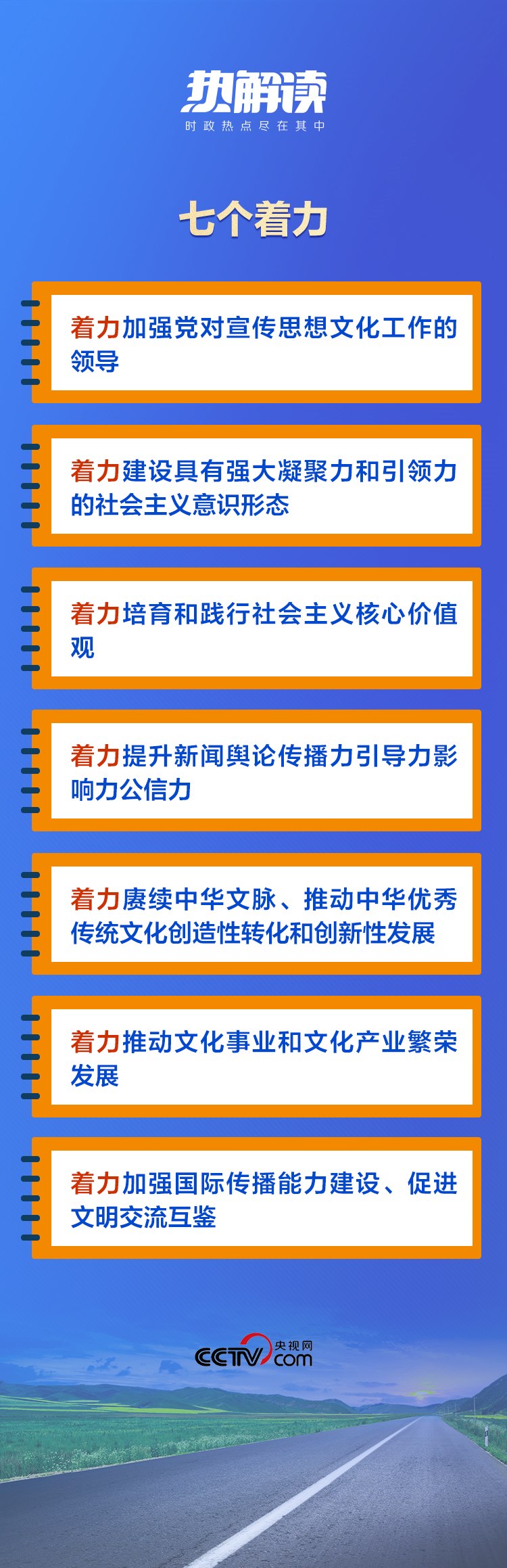 在這次對宣傳思想文化工作的重要指示中,總書記提出了“七個著力”的重要要求,為新時代文化建設(shè)明確了路線圖和任務(wù)書。