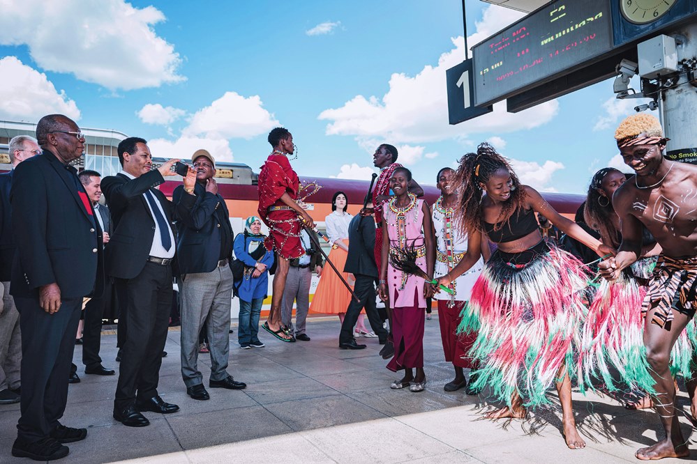 多國駐肯使節(jié)在肯尼亞內(nèi)羅畢的蒙內(nèi)鐵路內(nèi)羅畢站觀看文藝演出(2023 年 10 月 6 日攝) 王冠森攝 / 本刊