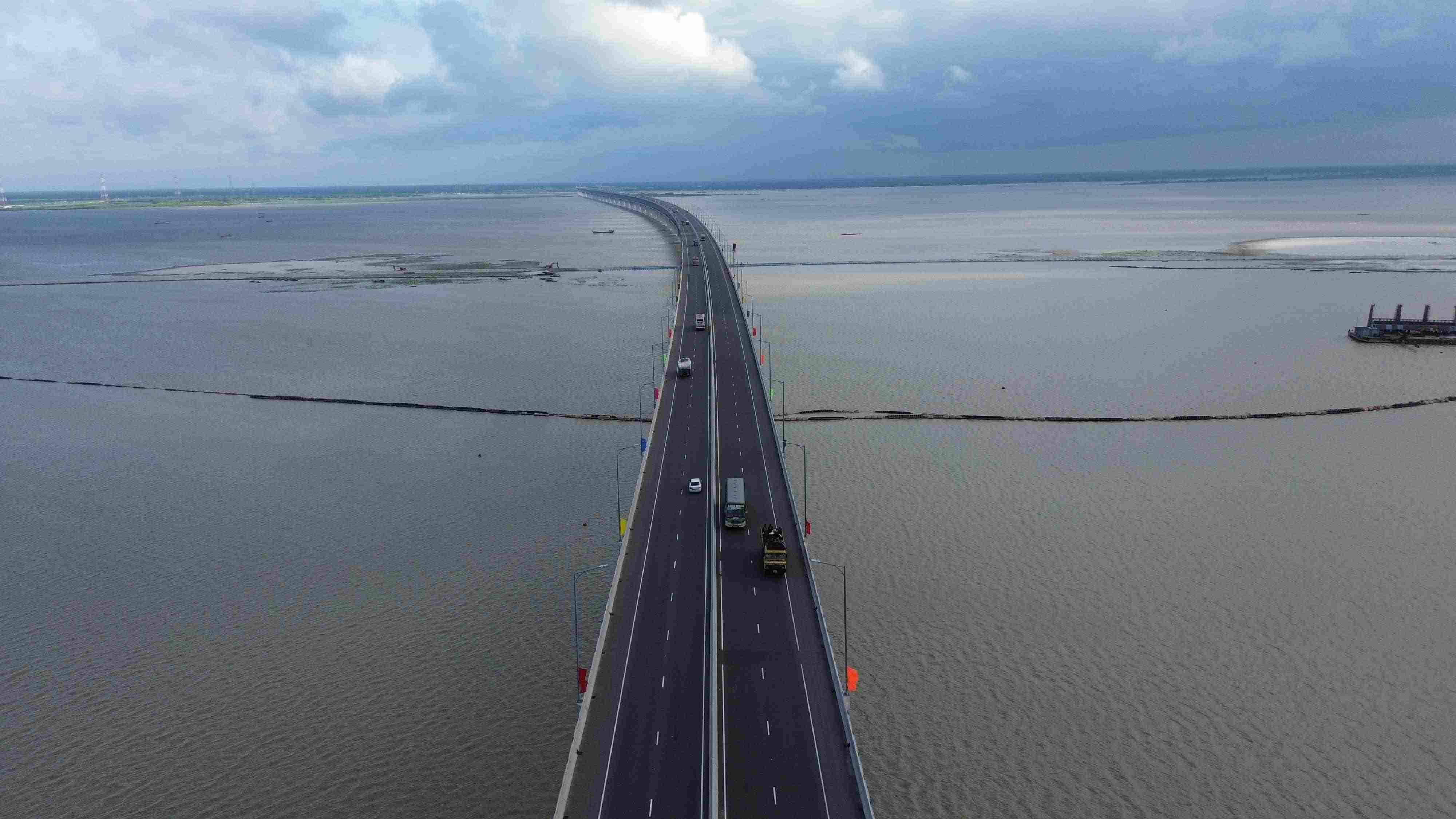 △2023年6月25日,位于孟加拉國首都達卡西南約40公里處的帕德瑪大橋。中企承建的孟加拉國最大橋梁項目——帕德瑪大橋,是連接中國及“泛亞鐵路”的重要通道之一。