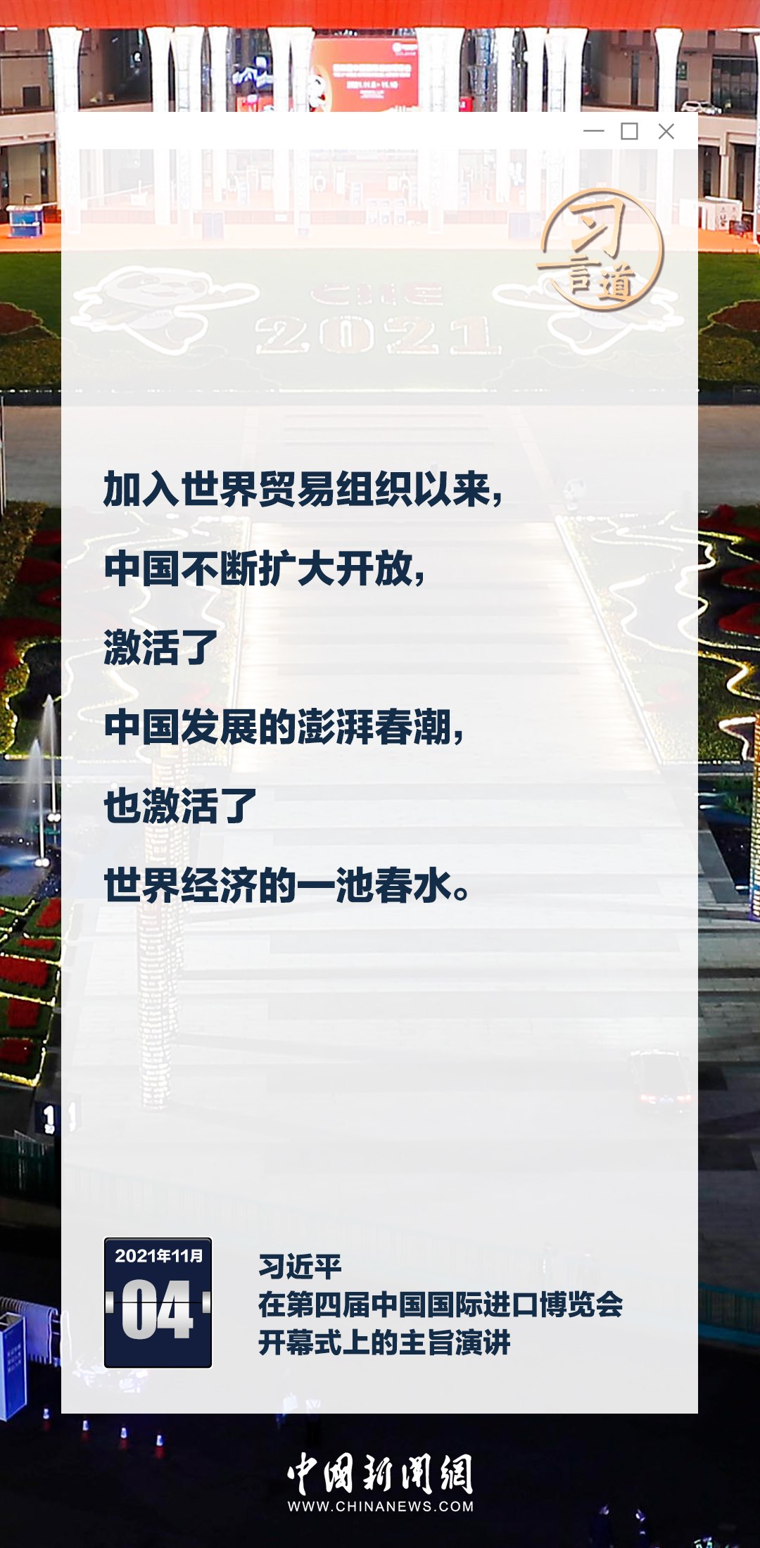 第六屆中國國際進口博覽會11月5日至10日在上海舉辦。習近平主席多次在進博會上闡明中國擴大高水平對外開放的決心,強調讓中國大市場成為世界大機遇。