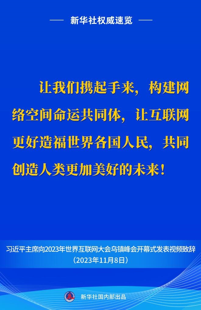 11月8日上午,國家主席習(xí)近平向2023年世界互聯(lián)網(wǎng)大會烏鎮(zhèn)峰會開幕式發(fā)表視頻致辭。一起來看金句。
