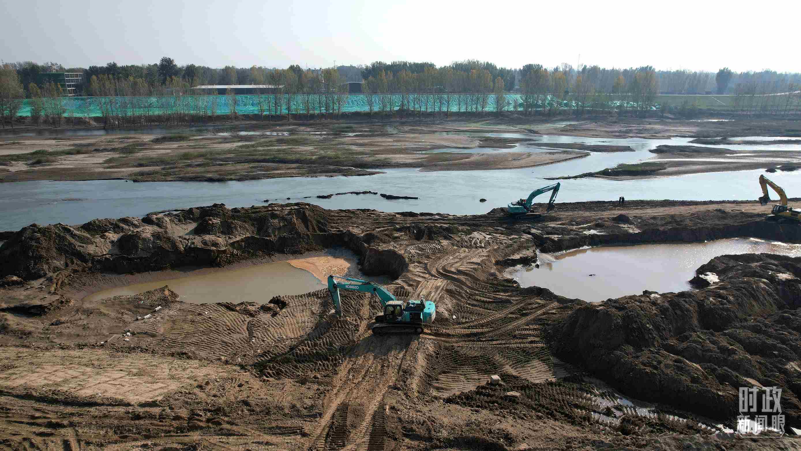 △ 白溝河治理工程(涿州段)施工現(xiàn)場(chǎng)航拍。(總臺(tái)國(guó)廣記者李晉拍攝)