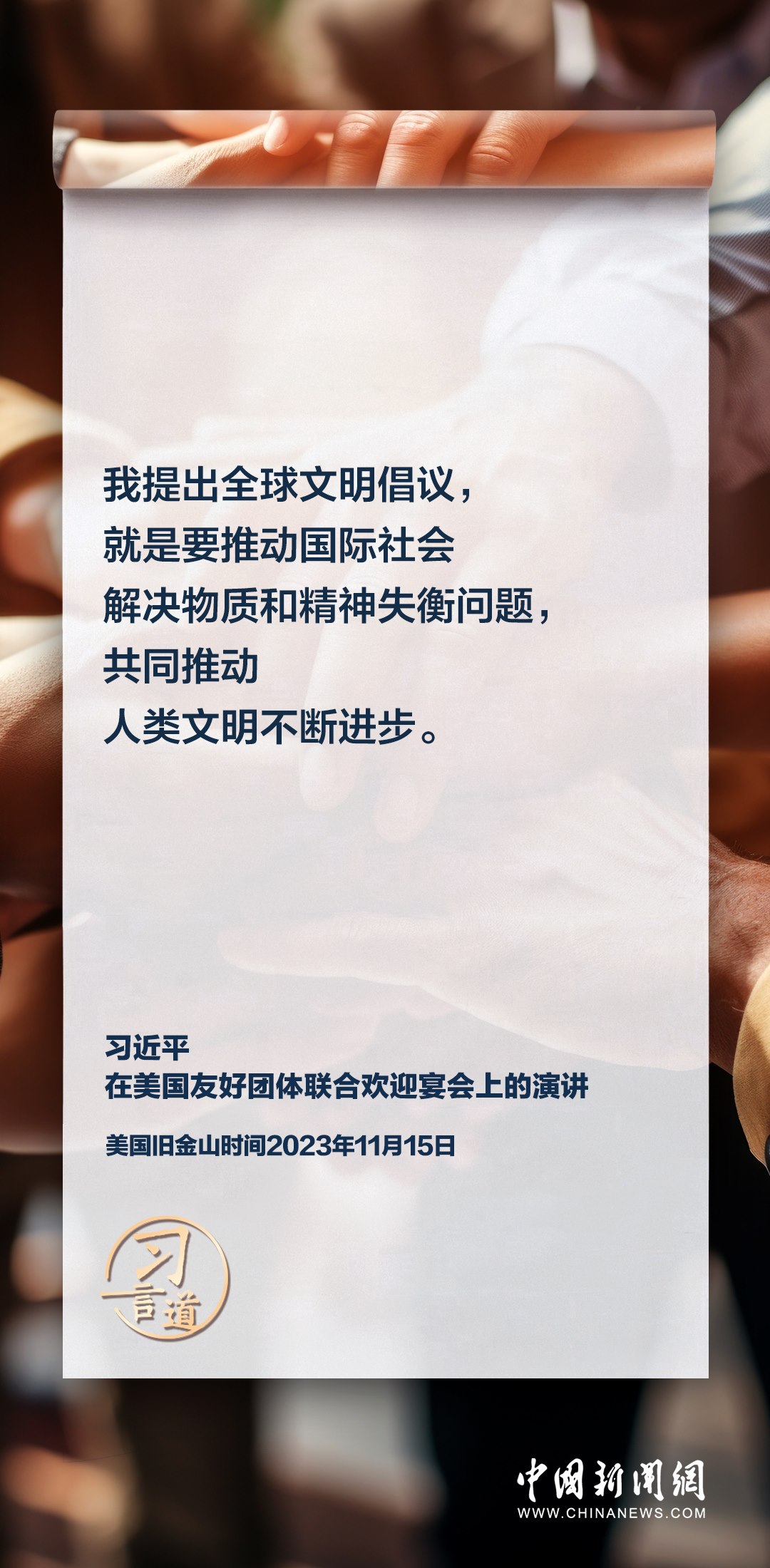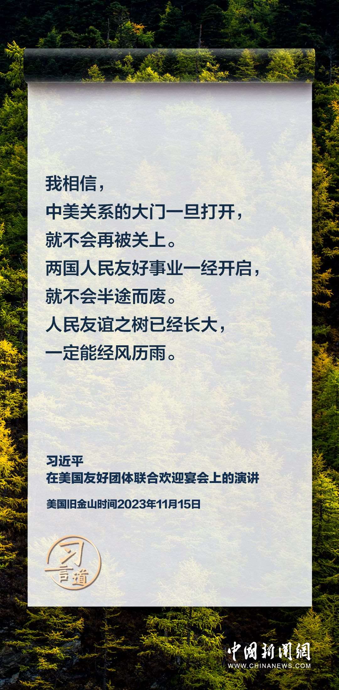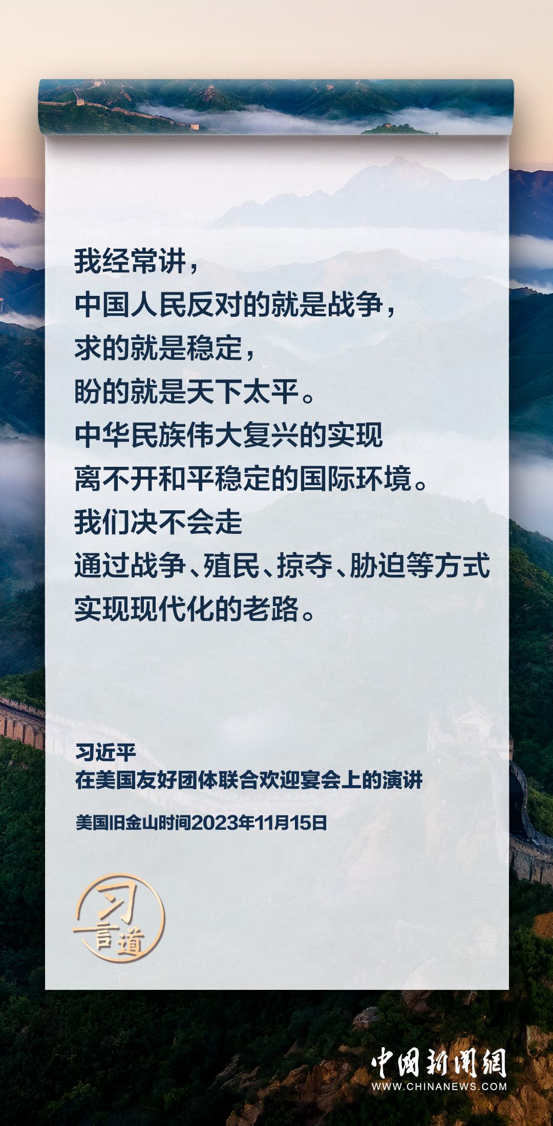 當(dāng)?shù)貢r(shí)間11月15日,中國(guó)國(guó)家主席習(xí)近平在美國(guó)舊金山出席美國(guó)友好團(tuán)體聯(lián)合歡迎宴會(huì)并發(fā)表演講。習(xí)近平在演講中從“我”和“我們”說起,提出中國(guó)主張、表明中國(guó)立場(chǎng)、展現(xiàn)大國(guó)擔(dān)當(dāng),話語擲地有聲。