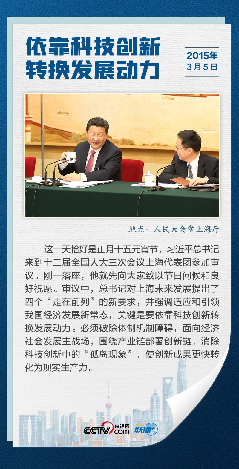 上海是我國最大的經(jīng)濟中心城市,是全國改革開放的排頭兵、創(chuàng)新發(fā)展的先行者,習(xí)近平曾多次深入上海各地區(qū)調(diào)研,多次參加全國兩會上海代表團審議,“科技創(chuàng)新”是他反復(fù)強調(diào)的關(guān)鍵詞。
