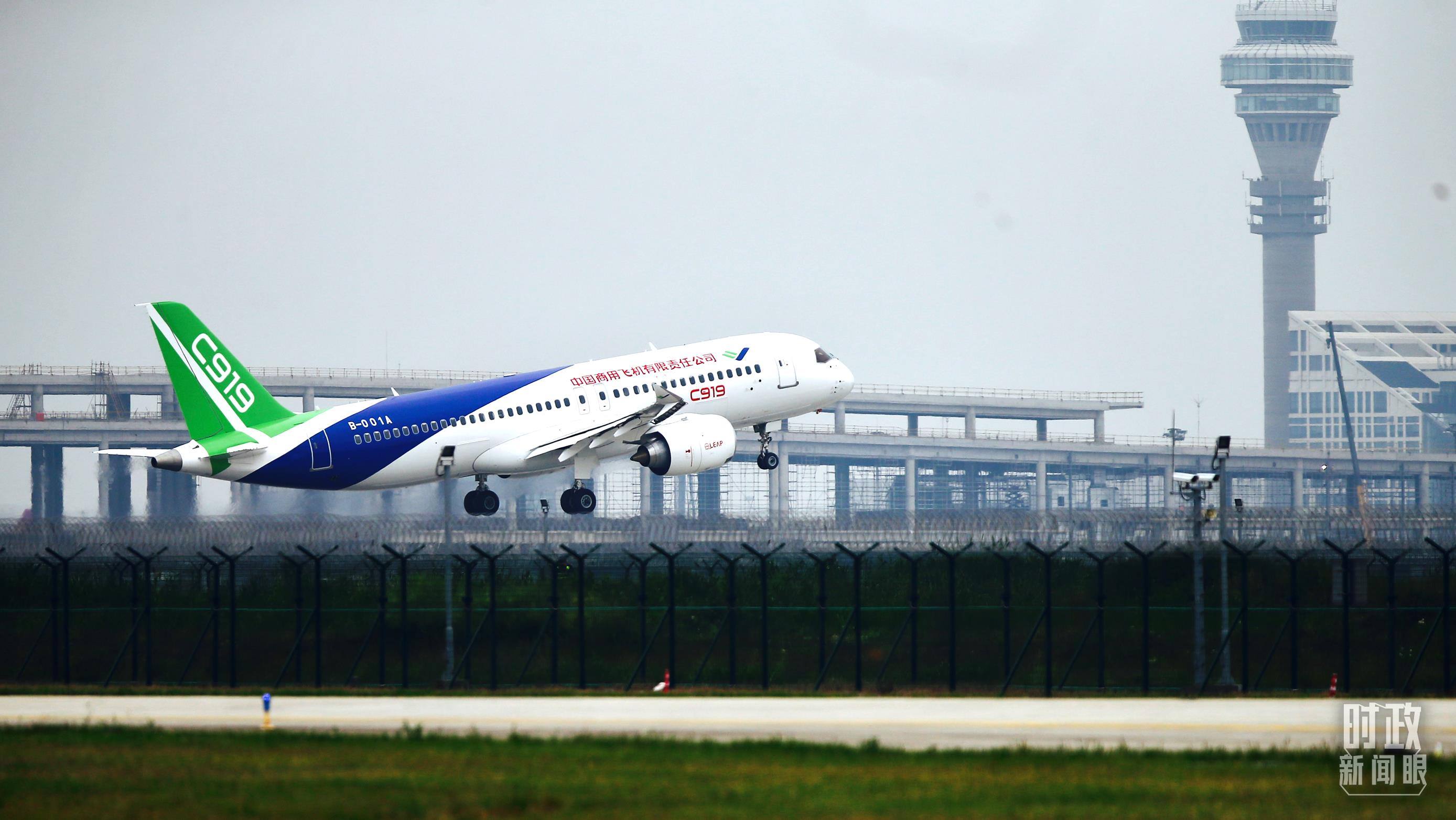 △2017年5月5日,國產(chǎn)大飛機C919成功首飛。(總臺國廣記者李晉拍攝)