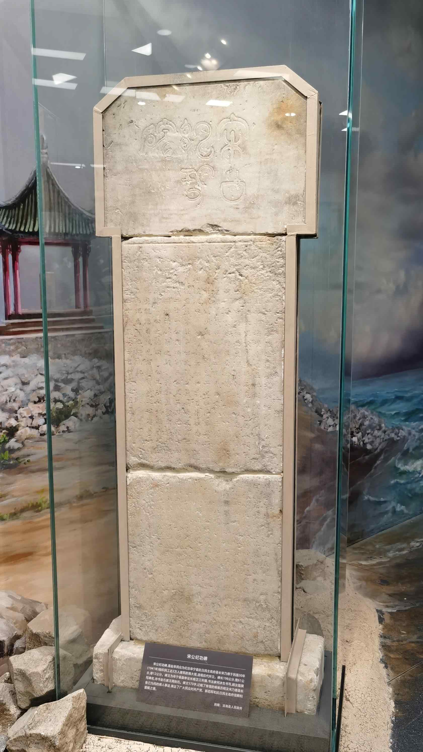 △新四軍紀念館里的宋公紀功碑。此碑是鹽阜民眾為紀念阜寧縣抗日民主政府縣長宋乃德于1941年組織修筑海防大堤所立。碑文記載了修筑大堤的艱難歷程,表達了鹽阜民眾對共產(chǎn)黨、新四軍和抗日民主政府的信賴和愛戴之情。(總臺央視記者郭鴻拍攝)