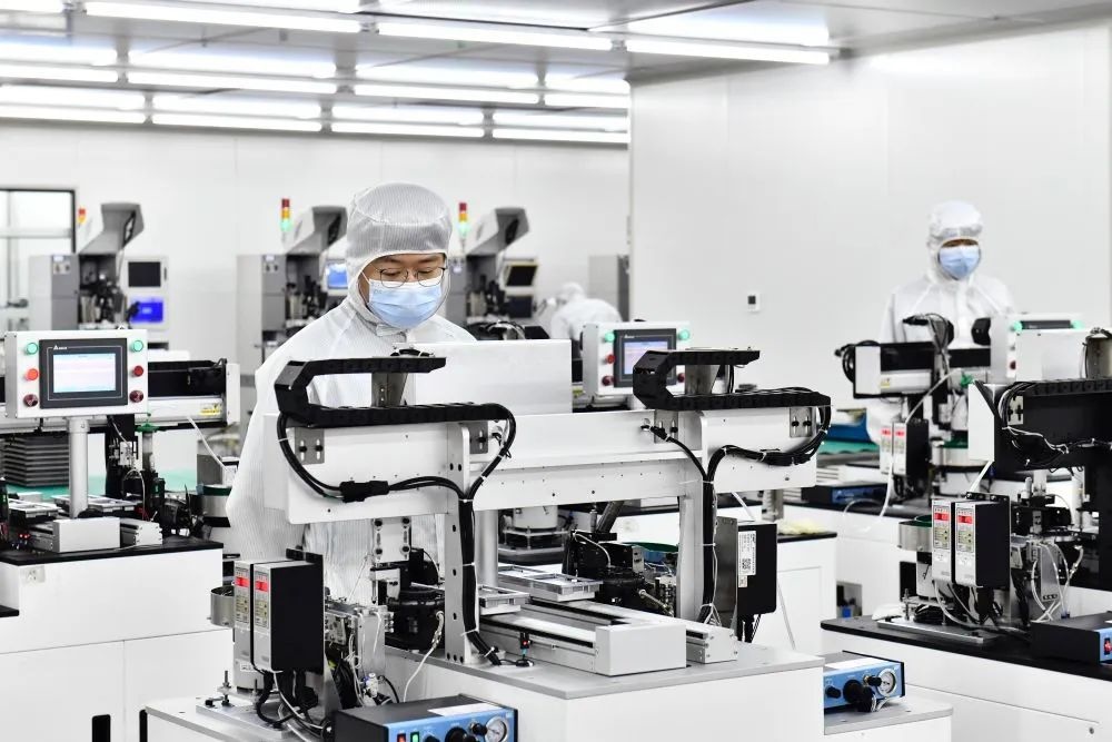 △2023年6月29日,在山東日照高新技術(shù)產(chǎn)業(yè)開發(fā)區(qū)智慧微電產(chǎn)業(yè)園,工作人員在生產(chǎn)濾波器。