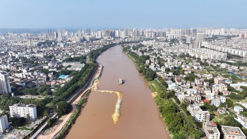 這是11月25日拍攝的平陸運(yùn)河途徑欽州市區(qū)的航道(無人機(jī)照片)。新華社記者 張愛林 攝