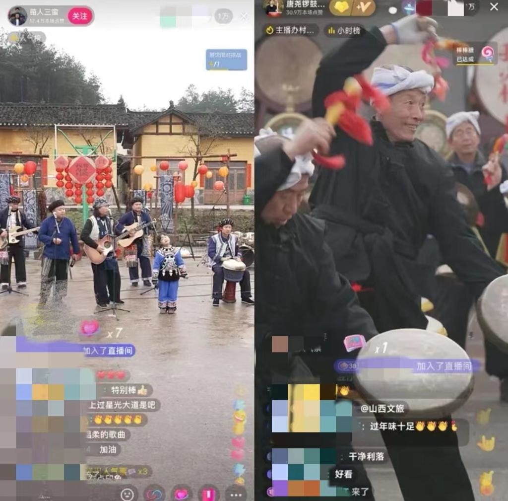 △山西臨汾和湖南鳳凰兩地“村晚”抖音直播連線。