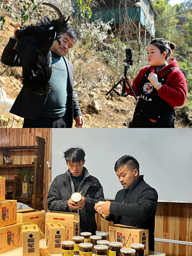 如今,山還是那些山,袁彬已將烏骨雞賣到全國各地。這背后是他為打開銷路進(jìn)行的探索:他嘗試電商直播,直播間就設(shè)在雞棚。產(chǎn)地直銷、直播選貨……他的直播間經(jīng)?!氨瑔巍?。去年9月,袁彬帶著村里幾個(gè)年輕人一起搞電商直播,把他們培養(yǎng)成了月薪近萬元的帶貨主播。