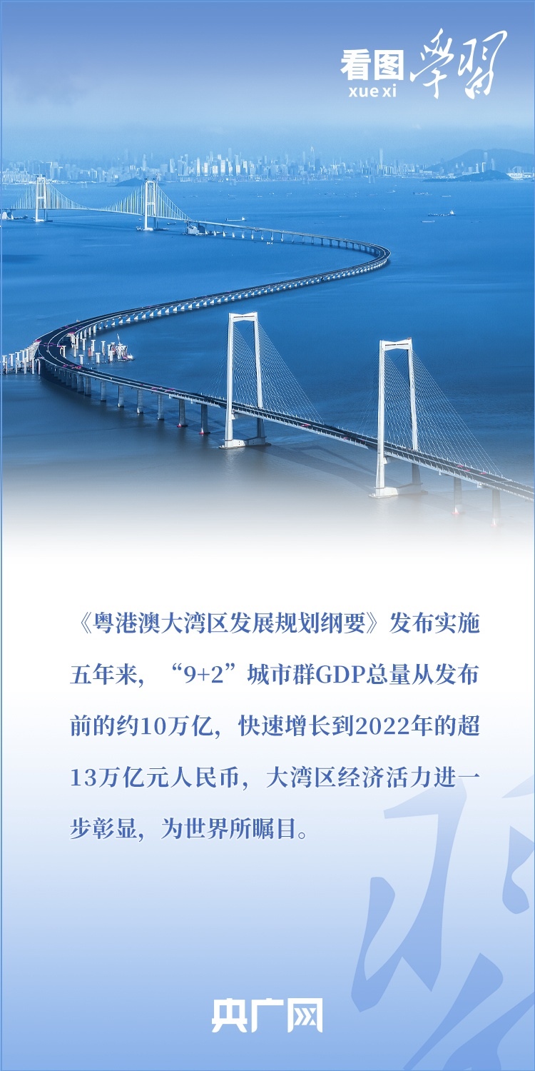 2019年2月,《粵港澳大灣區(qū)發(fā)展規(guī)劃綱要》正式發(fā)布。五年來,習(xí)近平總書記多次作出重要部署和深刻闡述,引領(lǐng)推進(jìn)粵港澳大灣區(qū)高水平建設(shè)。總書記強(qiáng)調(diào),要使粵港澳大灣區(qū)成為新發(fā)展格局的戰(zhàn)略支點(diǎn)、高質(zhì)量發(fā)展的示范地、中國式現(xiàn)代化的引領(lǐng)地。一起來學(xué)習(xí)!