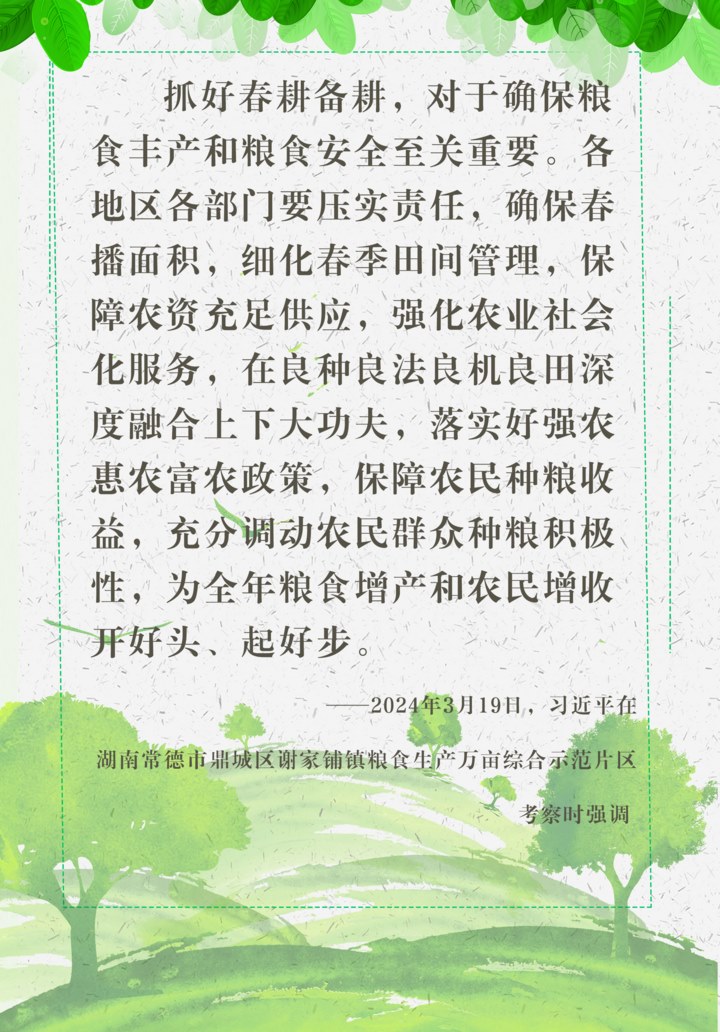 ??3月19日下午,習(xí)近平總書(shū)記來(lái)到湖南常德市鼎城區(qū)謝家鋪鎮(zhèn)糧食生產(chǎn)萬(wàn)畝綜合示范片區(qū),走進(jìn)水稻田邊,察看秧苗培育和土地翻耕情況,并同種糧大戶、農(nóng)技人員、基層干部和村民親切交流,詳細(xì)詢問(wèn)春耕備耕等情況。 ??“農(nóng)者,天下之本也?!?/p> ??在常德市鼎城區(qū)謝家鋪鎮(zhèn)港中坪村,農(nóng)民搶抓農(nóng)時(shí),整備農(nóng)機(jī)、備足農(nóng)資,開(kāi)展春耕生產(chǎn),播種豐收的希望。 ??3月19日,在港中坪村,村民駕駛農(nóng)機(jī)翻耕田地(無(wú)人機(jī)照片)。 ??3月19日,在港中坪村,村民駕駛農(nóng)機(jī)翻耕田地(無(wú)人機(jī)照片)。 ??3月19日,在港中坪村,村民駕駛農(nóng)機(jī)翻耕田地。 ??3月19日,在港中坪村,村民駕駛農(nóng)機(jī)翻耕田地。 ??3月19日,在港中坪村,村民駕駛農(nóng)機(jī)翻耕田地。 ??3月19日,在港中坪村,村民在疏通田間的水渠。 ??3月19日,在港中坪村,村民駕駛農(nóng)機(jī)翻耕田地。 ??監(jiān)制:郭建業(yè) ??策劃:賴向東 ??統(tǒng)籌:畢曉洋 徐亮 ??編輯:侯俊 李琰 張曼怡 杜瀟逸 ??攝影:鞠鵬 謝環(huán)馳 王曄 燕雁 薛宇舸 陳思汗 盧燁 ??新華社攝影部、湖南分社聯(lián)合制作 ??新華社第一工作室出品