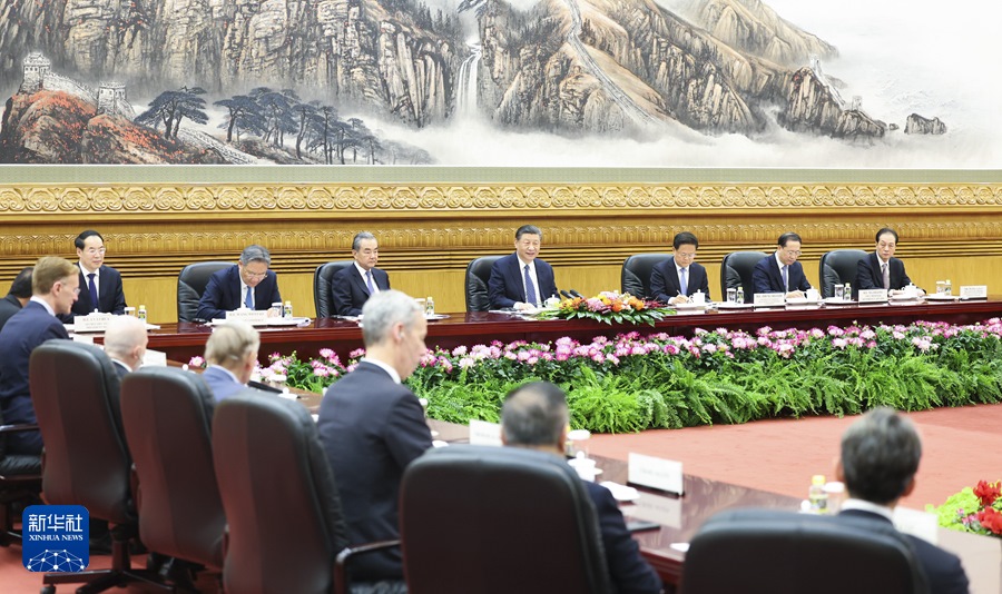 ??新華社北京3月27日電(記者楊依軍)3月27日,國(guó)家主席習(xí)近平在北京人民大會(huì)堂集體會(huì)見(jiàn)美國(guó)工商界和戰(zhàn)略學(xué)術(shù)界代表。