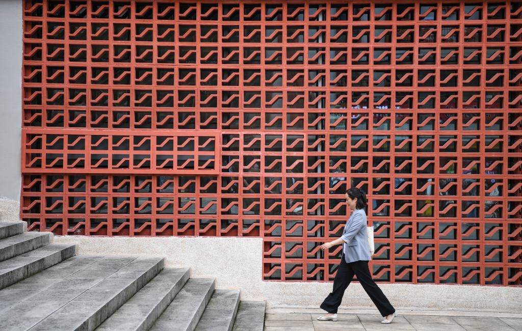 2023年4月28日,在竣工亮相的民主村片區(qū)城市更新項(xiàng)目(一期),人們?cè)谝惶幑部臻g休息(無(wú)人機(jī)照片)。