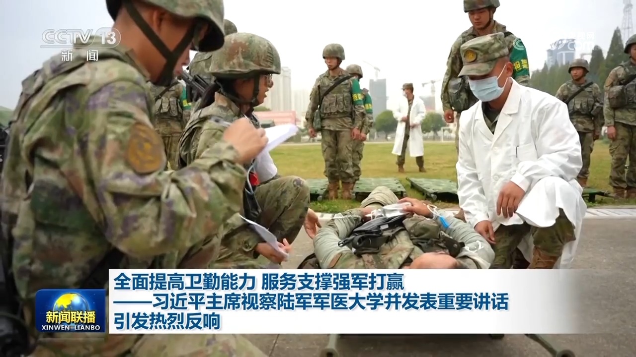 央視網(wǎng)消息(新聞聯(lián)播):中共中央總書(shū)記、國(guó)家主席、中央軍委主席習(xí)近平4月23日到陸軍軍醫(yī)大學(xué)視察,強(qiáng)調(diào)面向戰(zhàn)場(chǎng)、面向部隊(duì)、面向未來(lái),努力建設(shè)世界一流軍醫(yī)大學(xué)。廣大官兵認(rèn)真學(xué)習(xí)領(lǐng)會(huì)講話精神,表示要牢記統(tǒng)帥勉勵(lì)囑托,聚焦練兵備戰(zhàn),加快創(chuàng)新發(fā)展,全面提升衛(wèi)勤保障能力,為強(qiáng)軍打贏提供有力支撐。