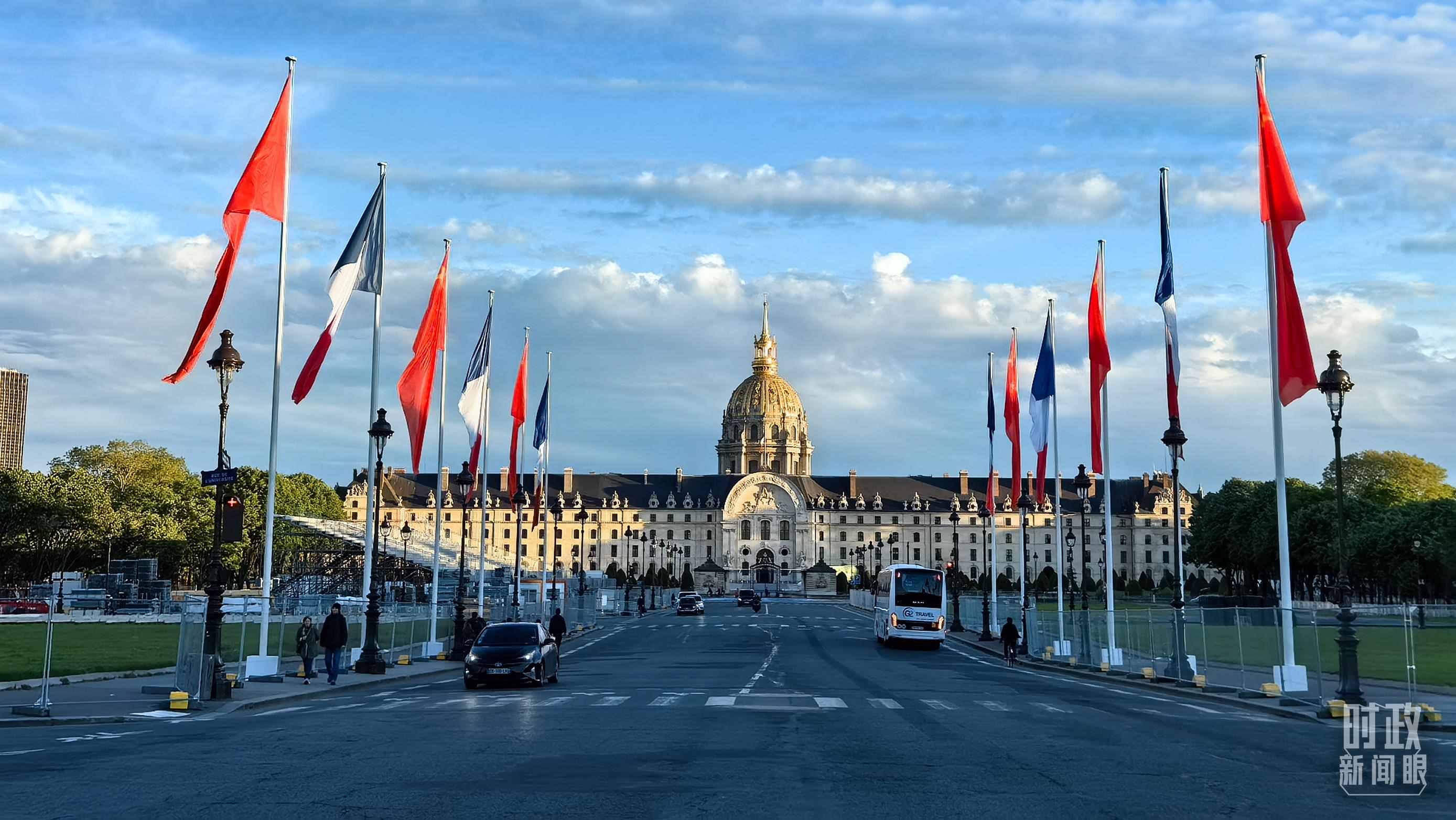 △法國(guó)巴黎榮軍院前懸掛中法兩國(guó)國(guó)旗。(總臺(tái)國(guó)廣記者吳倩拍攝)