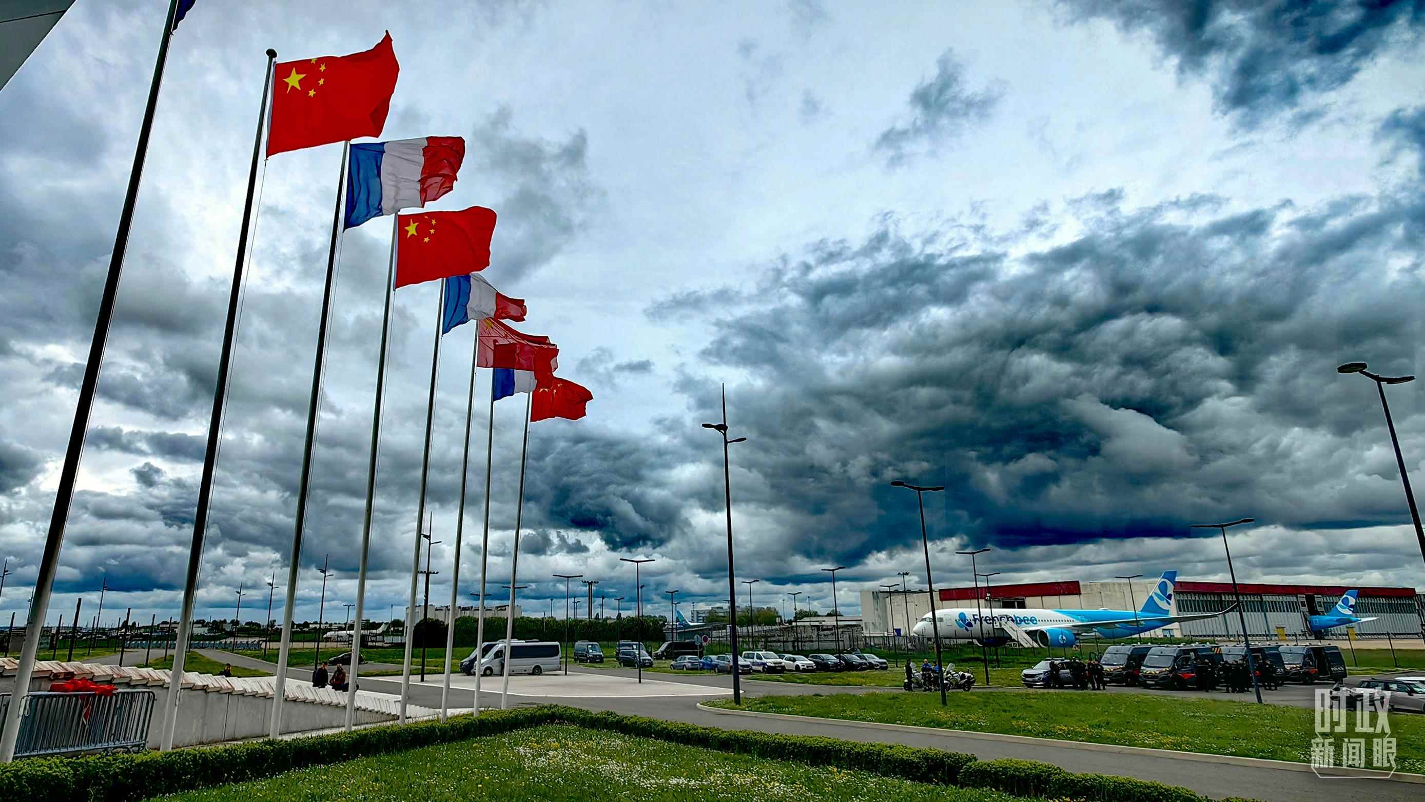 △巴黎奧利機(jī)場(chǎng),中法兩國(guó)國(guó)旗迎風(fēng)招展。(總臺(tái)央視記者段德文拍攝)