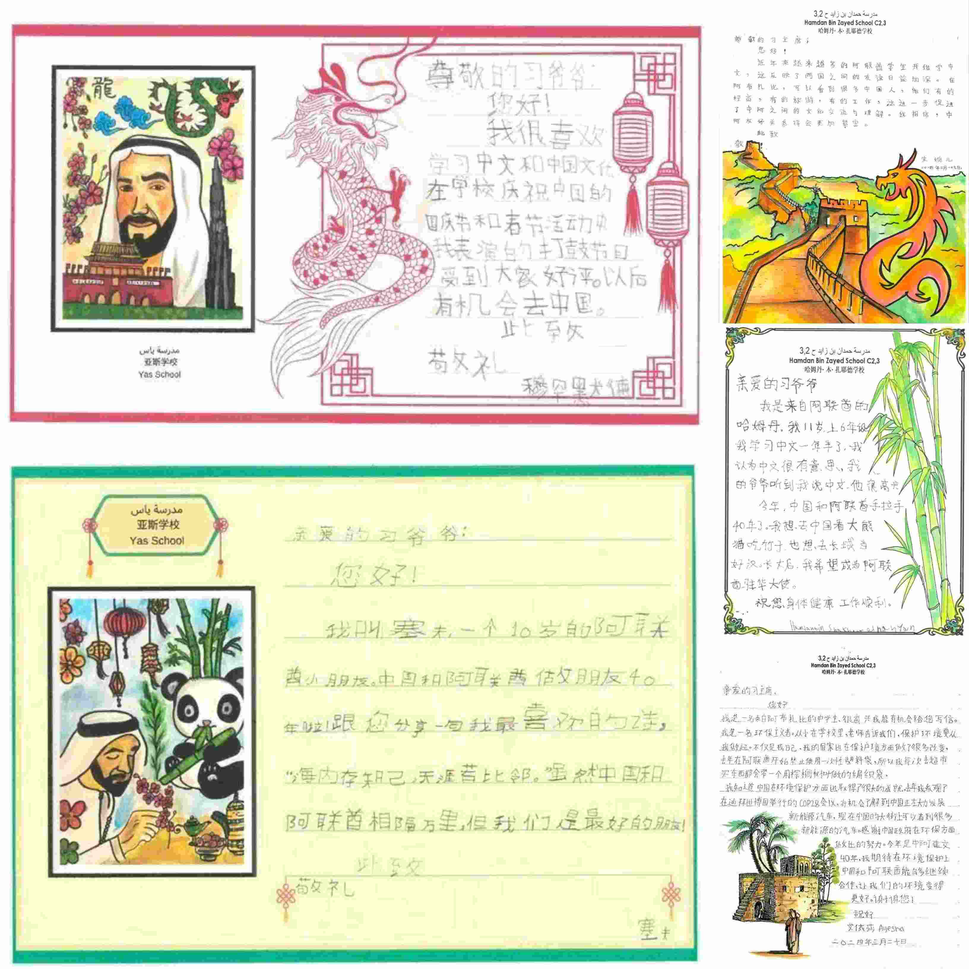 不久前,40封書信從阿聯(lián)酋哈姆丹·本·扎耶德學校、亞斯學校寄往北京,收件人是習近平主席。在這些信箋里,孩子們用中文一筆一畫講述著中阿友好的故事。他們是阿聯(lián)酋中文教學“百校項目”學生代表,代表著阿聯(lián)酋171所開設(shè)中文課程的學校中7.1萬名學習中文的學生。
