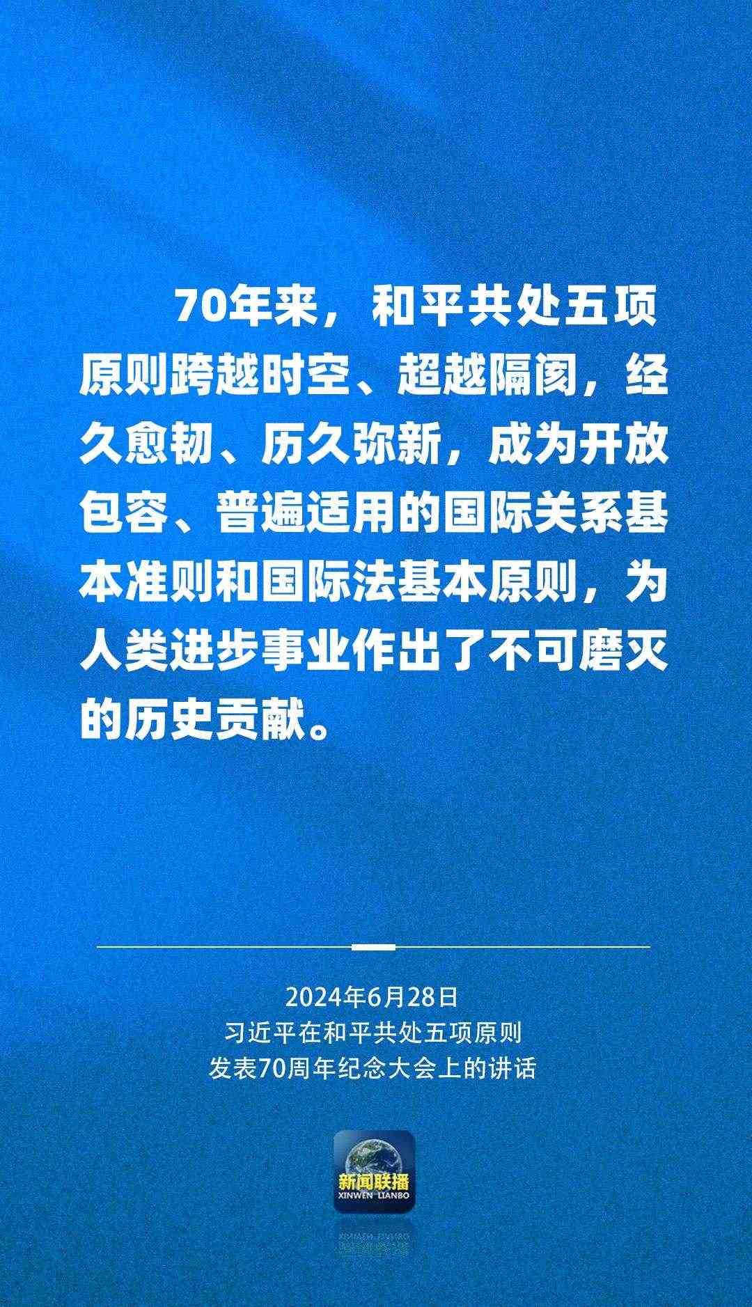 6月28日上午,國家主席習近平在北京人民大會堂出席和平共處五項原則發(fā)表70周年紀念大會并發(fā)表重要講話。