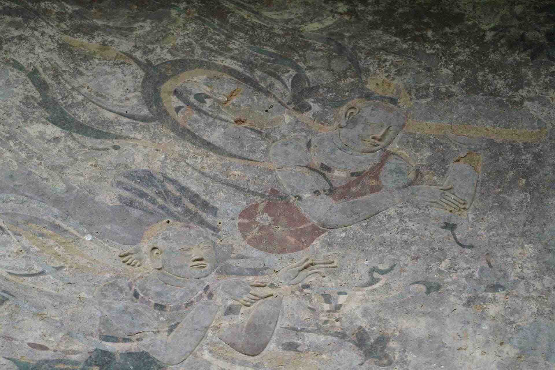 而其他身體部分、衣裙、飄帶等是描繪出來的