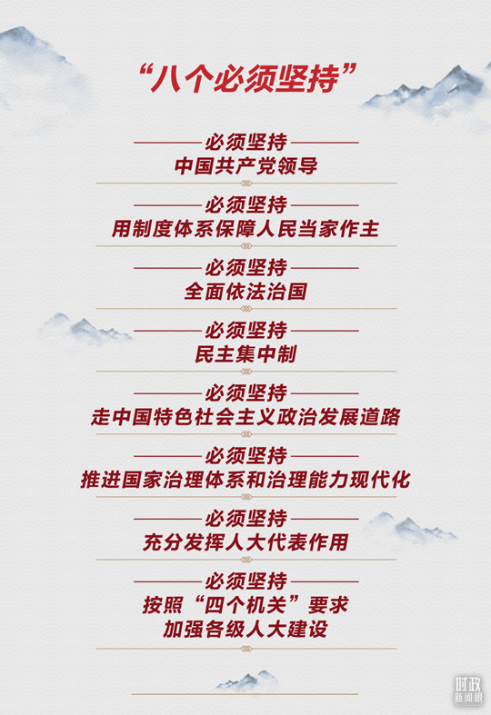 在今年這次大會(huì)上,總書記用“八個(gè)必須堅(jiān)持”系統(tǒng)總結(jié)新時(shí)代人民代表大會(huì)制度理論和實(shí)踐創(chuàng)新重大成果。