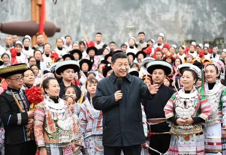 在四川大涼山腹地,走進(jìn)彝族貧困戶家里,和村民代表、駐村扶貧工作隊(duì)員圍坐在火塘邊,謀劃精準(zhǔn)脫貧之策;在貴州畢節(jié)化屋村,告訴鄉(xiāng)親們“全面小康一個(gè)民族不能少,全面建設(shè)社會(huì)主義現(xiàn)代化國(guó)家,一個(gè)民族也不能落下”;在西藏,指出“我們是一個(gè)中華民族共同體,要同舟共濟(jì)邁向第二個(gè)百年奮斗目標(biāo)”……習(xí)近平總書記多次走到各族群眾中間,傾聽他們的心聲,共話民族地區(qū)發(fā)展,中華民族共同體意識(shí)日益深入人心。