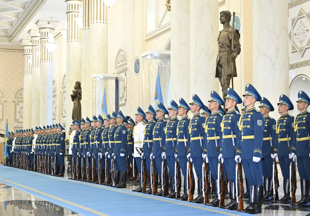 當(dāng)?shù)貢r(shí)間3日,國(guó)家主席習(xí)近平在阿斯塔納出席哈薩克斯坦總統(tǒng)托卡耶夫舉行的歡迎儀式。