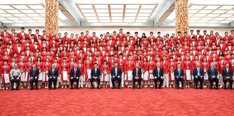 △8月20日,北京人民大會堂,習(xí)近平總書記接見第33屆夏季奧林匹克運動會中國體育代表團(tuán)全體成員并發(fā)表重要講話。