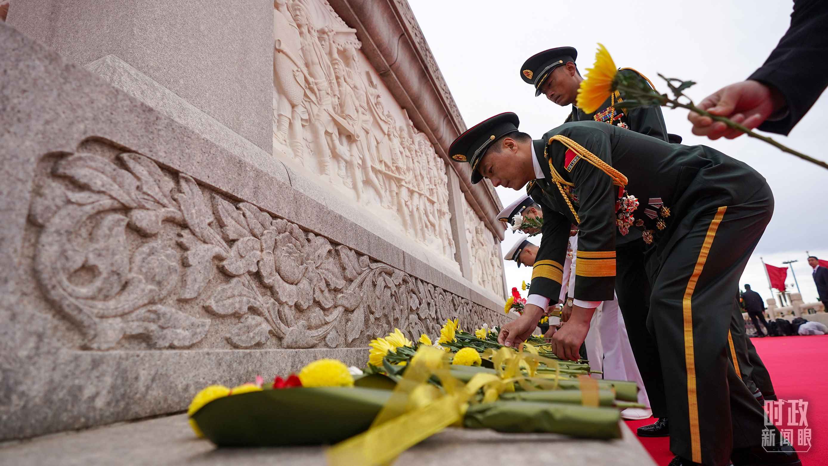 正逢新中國(guó)成立75周年,今年參加儀式的人數(shù)規(guī)模有所增加。《時(shí)政新聞眼》現(xiàn)場(chǎng)了解到,相較去年,人民英雄紀(jì)念碑基座上增加了4名禮兵。今年參加儀式的各界代表增至2400多名。