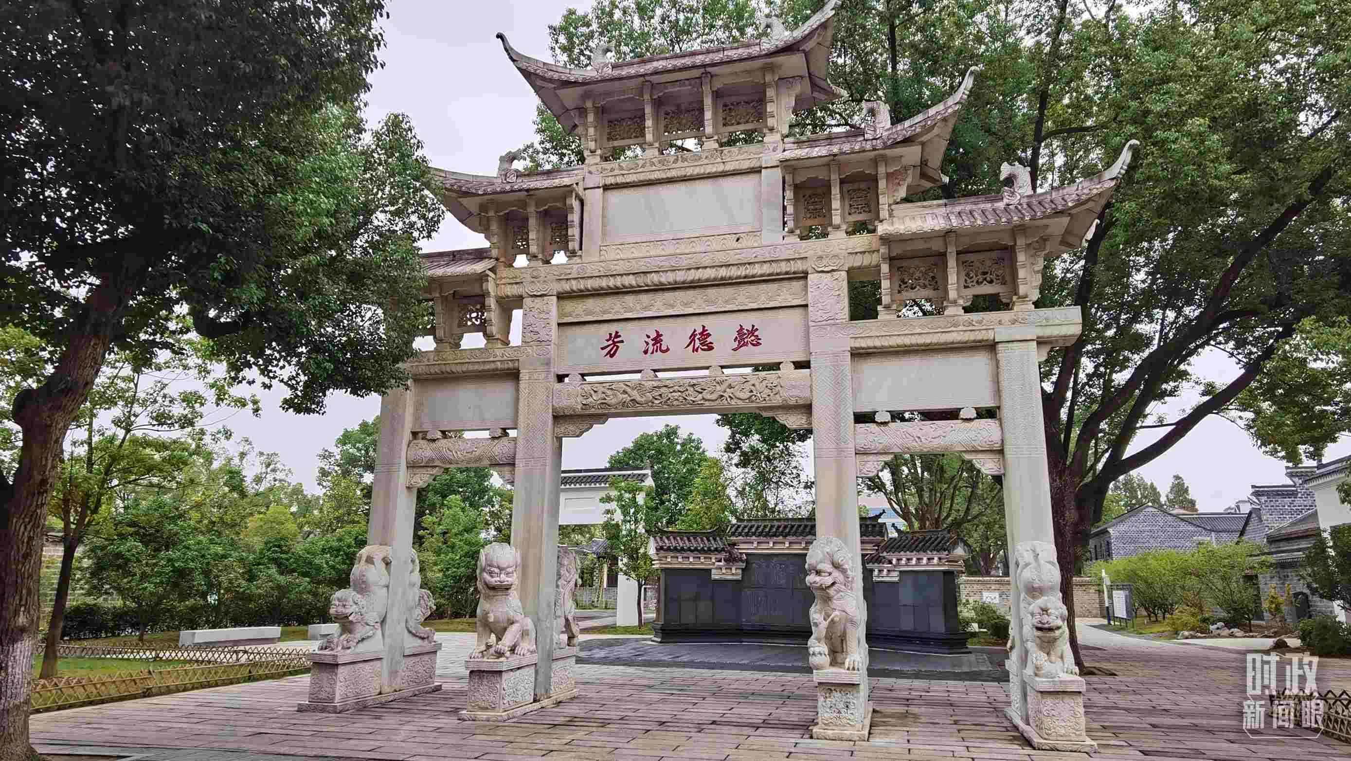 △六尺巷的“懿德流芳”和“禮讓”石牌坊。(總臺央視記者郭鴻、總臺央廣記者馬喆拍攝)