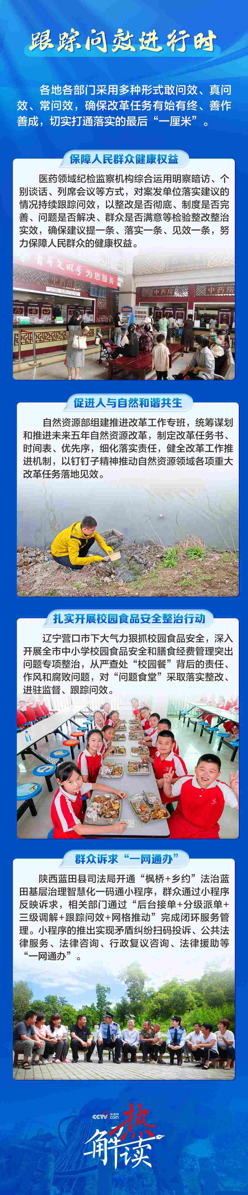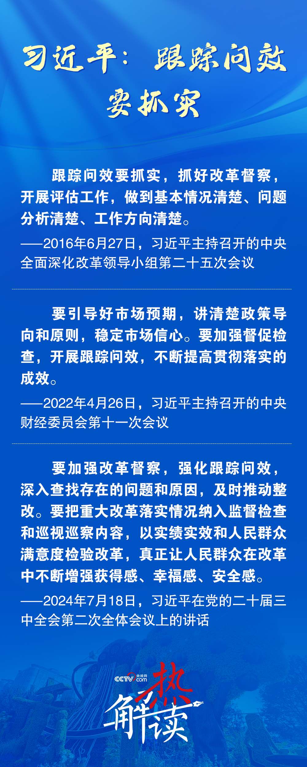 今年7月,在黨的二十屆三中全會(huì)第二次全體會(huì)議上,習(xí)近平總書記進(jìn)一步提出,要強(qiáng)化跟蹤問效,深入查找存在的問題和原因,及時(shí)推動(dòng)整改。