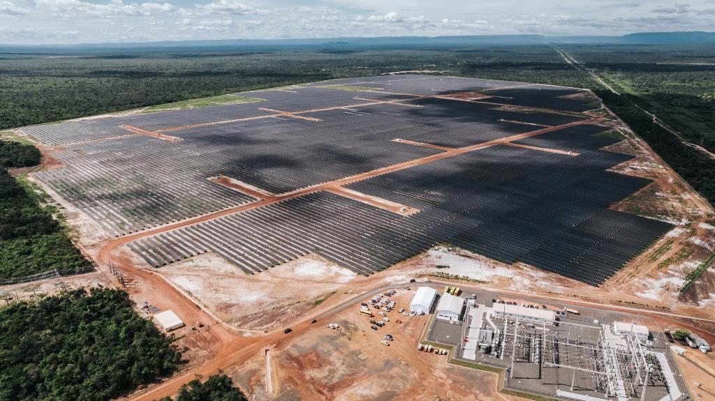 這是2024年6月7日在巴西皮奧伊州拍攝的由中國(guó)國(guó)家電力投資集團(tuán)公司(國(guó)家電投)巴西公司投資并主導(dǎo)建設(shè)的馬蘭加圖光伏電站(無人機(jī)照片)。新華社記者 王天聰 攝