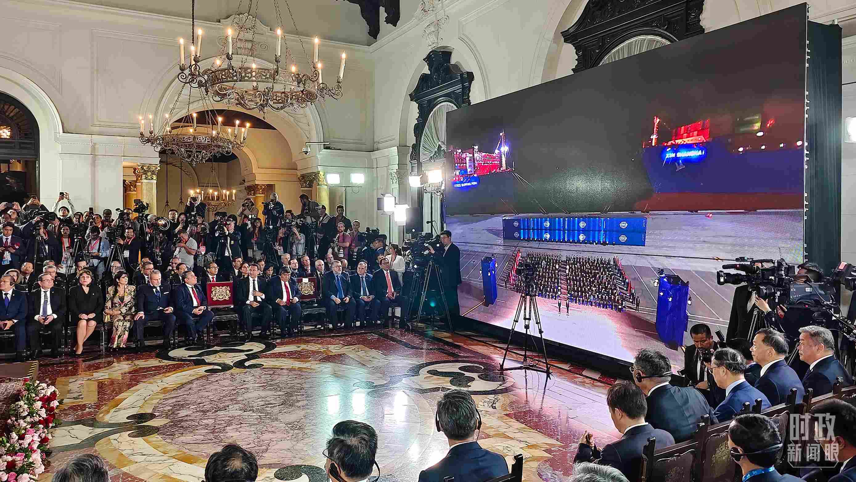 當(dāng)晚,在利馬總統(tǒng)府,習(xí)近平主席同博魯阿爾特總統(tǒng)以視頻方式共同出席了一場(chǎng)重要儀式——錢凱港開港儀式。