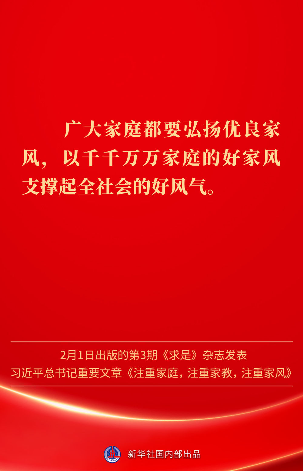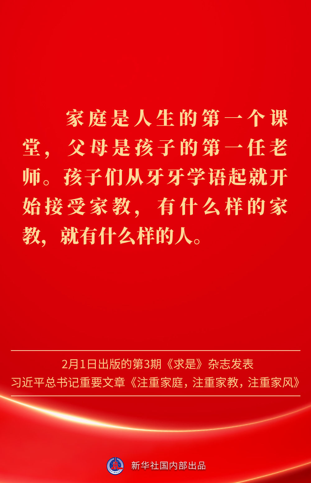 萬家團圓共慶新春佳節(jié)之際,2月1日出版的第3期《求是》雜志發(fā)表習近平總書記重要文章《注重家庭,注重家教,注重家風》。為什么要注重家庭、家教、家風?如何做好家庭文明建設?習近平總書記這樣闡述——