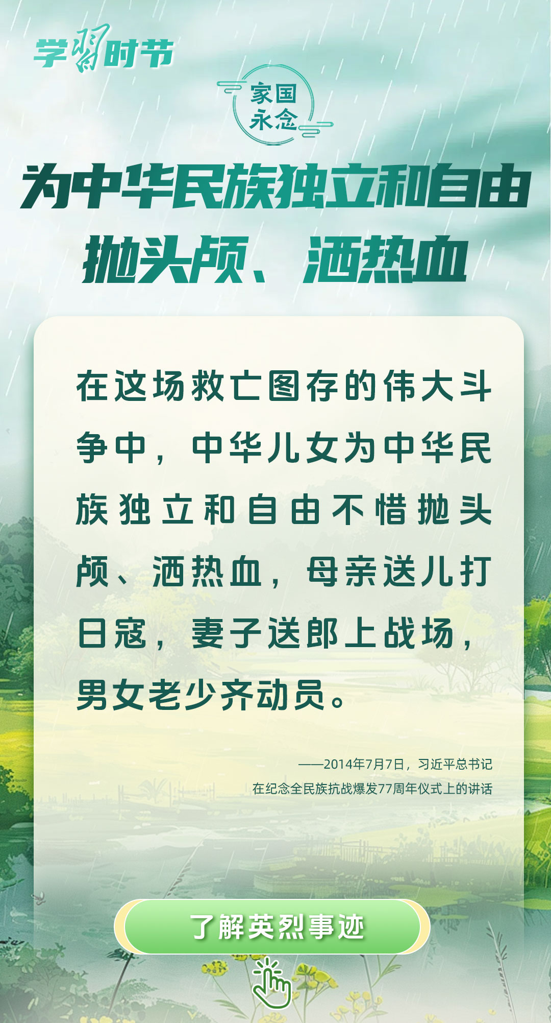 今年是中國人民抗日戰(zhàn)爭暨世界反法西斯戰(zhàn)爭勝利80周年、中國人民志愿軍抗美援朝出國作戰(zhàn)75周年。習(xí)近平總書記曾說:“對(duì)一切為國家、為民族、為和平付出寶貴生命的人們,不管時(shí)代怎樣變化,我們都要永遠(yuǎn)銘記他們的犧牲和奉獻(xiàn)。”今天我們所擁有的一切,無不凝結(jié)著英雄、英烈們的奉獻(xiàn)付出乃至巨大犧牲。