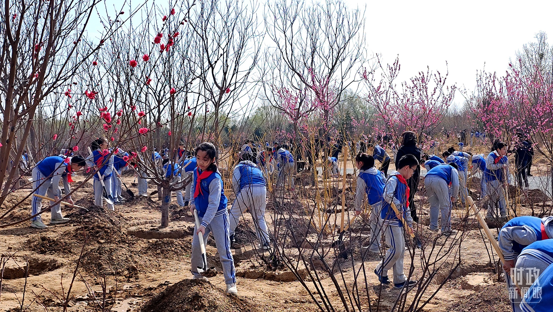 △少先隊員拿起鐵鍬參加義務(wù)植樹。(總臺央視記者范凱拍攝)