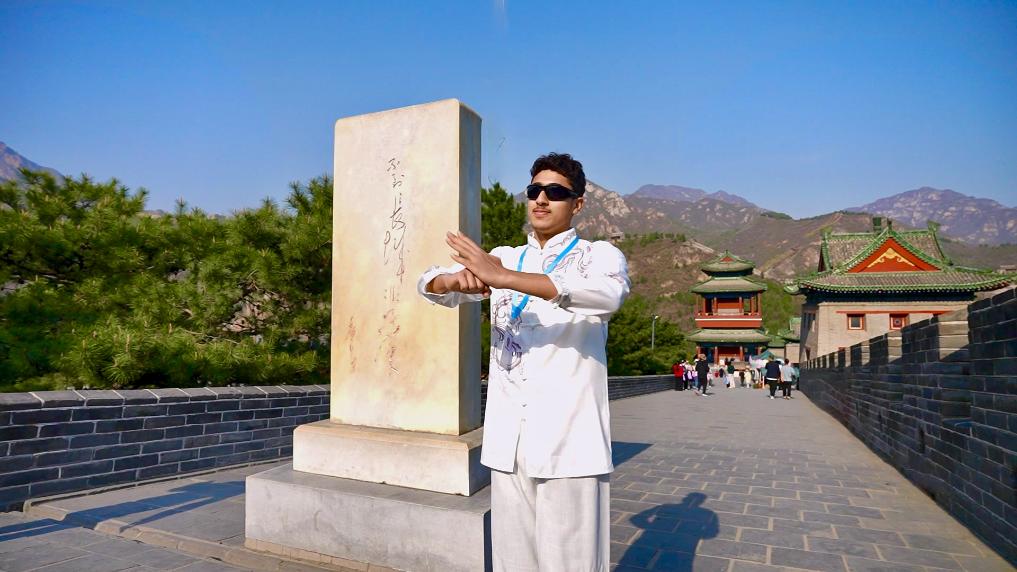 又是一年春好時。4月6日,站在長城上,愛好中國功夫的阿聯(lián)酋學(xué)生哈姆丹·艾哈邁德特意穿上嶄新的中式服裝,表演了一套中國功夫,一招一式頗有氣勢。“我想在中國學(xué)習(xí)中文和更多功夫!”哈姆丹還是乒乓球愛好者,整天球不離手。他期待這次有機(jī)會和中國朋友一起切磋球技。