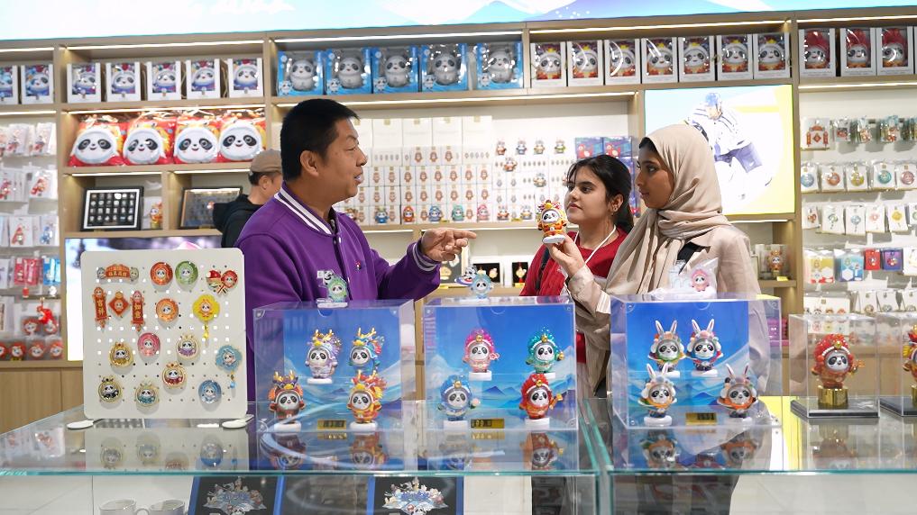 在第一站北京,她已給阿聯(lián)酋的親友準(zhǔn)備了不少禮物:中華美景冰箱貼、中式小帽子、大熊貓鑰匙扣、印有長城圖案的杯子和紀(jì)念幣……在北京奧運博物館紀(jì)念品商店,她頭一次接觸中國潮玩,對憨態(tài)可掬的盲盒玩偶“龍墩墩”愛不釋手。