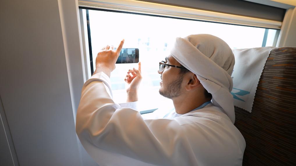 “社牛”哈姆丹·扎耶德一上車就興奮地用中文和鄰座的中國乘客打起招呼??粗巴饩吧w馳而過,他直呼自己“圓夢啦”。隨身攜帶乒乓球拍的哈姆丹·艾哈邁德得知半小時左右就可抵達(dá)天津,開心不已:“馬上就能和中國朋友打乒乓球啦!”哈利法·哈立德說,中國高鐵既高效又環(huán)保,“希望更多國家也能跑起高鐵”。