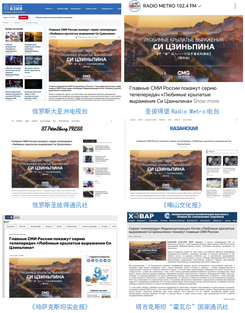 俄羅斯大亞洲電視臺(tái)、圣彼得堡Radio Metro電臺(tái)、俄羅斯圣彼得通訊社、《喀山文化報(bào)》《哈薩克斯坦實(shí)業(yè)報(bào)》、塔吉克斯坦“霍瓦爾”國家通訊社等亞歐地區(qū)多家主流媒體播發(fā)相關(guān)報(bào)道。