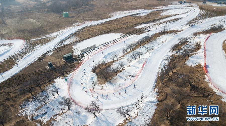 1月11日至1月15日,2018-2019年度全國青少年越野滑雪錦標(biāo)賽在內(nèi)蒙古烏蘭察布市涼城縣岱?;﹫雠e行。這是選手在青年組男子30公里集體出發(fā)(自由技術(shù))比賽中(1月12日攝)。新華社記者彭源攝