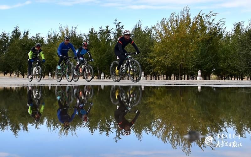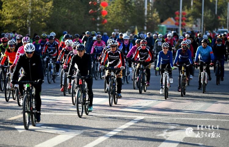 據(jù)了解,本次比賽共有來自全區(qū)各盟市共18支代表隊(duì)、200多名騎手參加,分為:城市繞圈團(tuán)體計(jì)時(shí)賽,即精英組6.5公里×3圈和本地組6.5公里×2圈;環(huán)烏梁素海個(gè)人賽,即精英組男子60公里,精英組女子30公里。比賽線路設(shè)計(jì)以烏拉特前旗城市建設(shè)展示和烏梁素海秋日風(fēng)光為核心,賽手們?cè)诮鹕锶罩幸宦否Y騁。