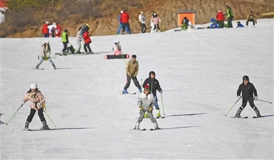 滑雪愛好者在呼和浩特市馬鬃山滑雪場(chǎng)滑雪。記者 王磊 攝