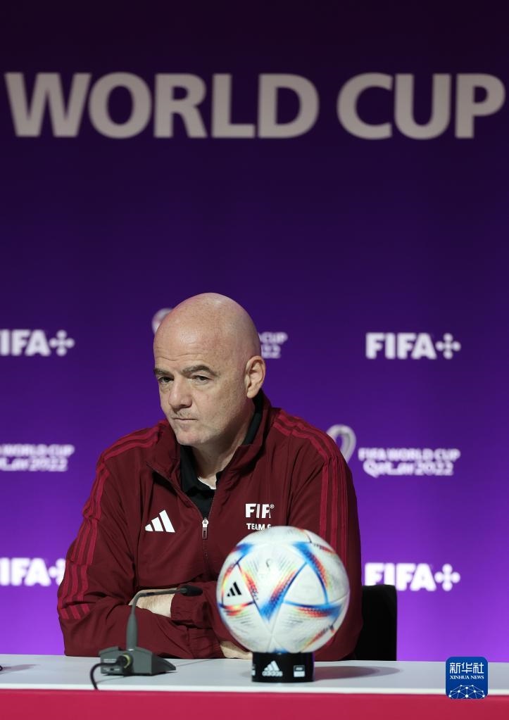 11月18日,國際足聯(lián)主席因凡蒂諾在通氣會(huì)上。新華社記者 賈浩成 攝