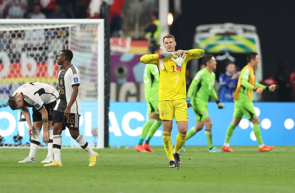 11月23日,德國隊(duì)諾伊爾(前)在比賽后。新華社記者潘昱龍攝