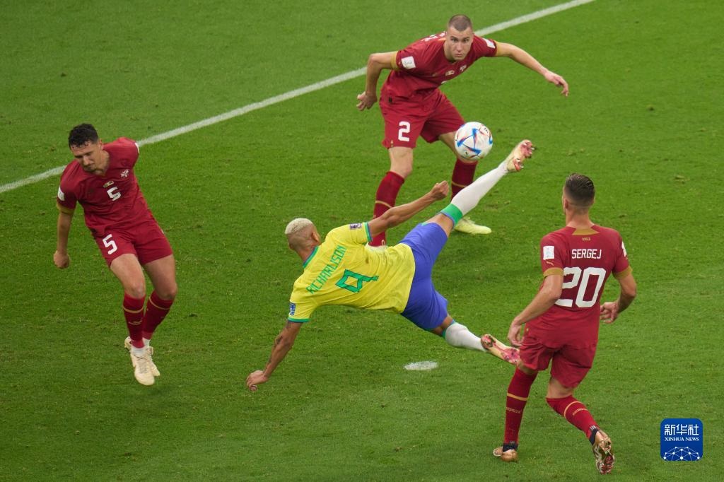 當(dāng)日,在卡塔爾盧賽爾球場進行的2022卡塔爾世界杯足球賽G組比賽中,巴西隊以2比0戰(zhàn)勝塞爾維亞隊。